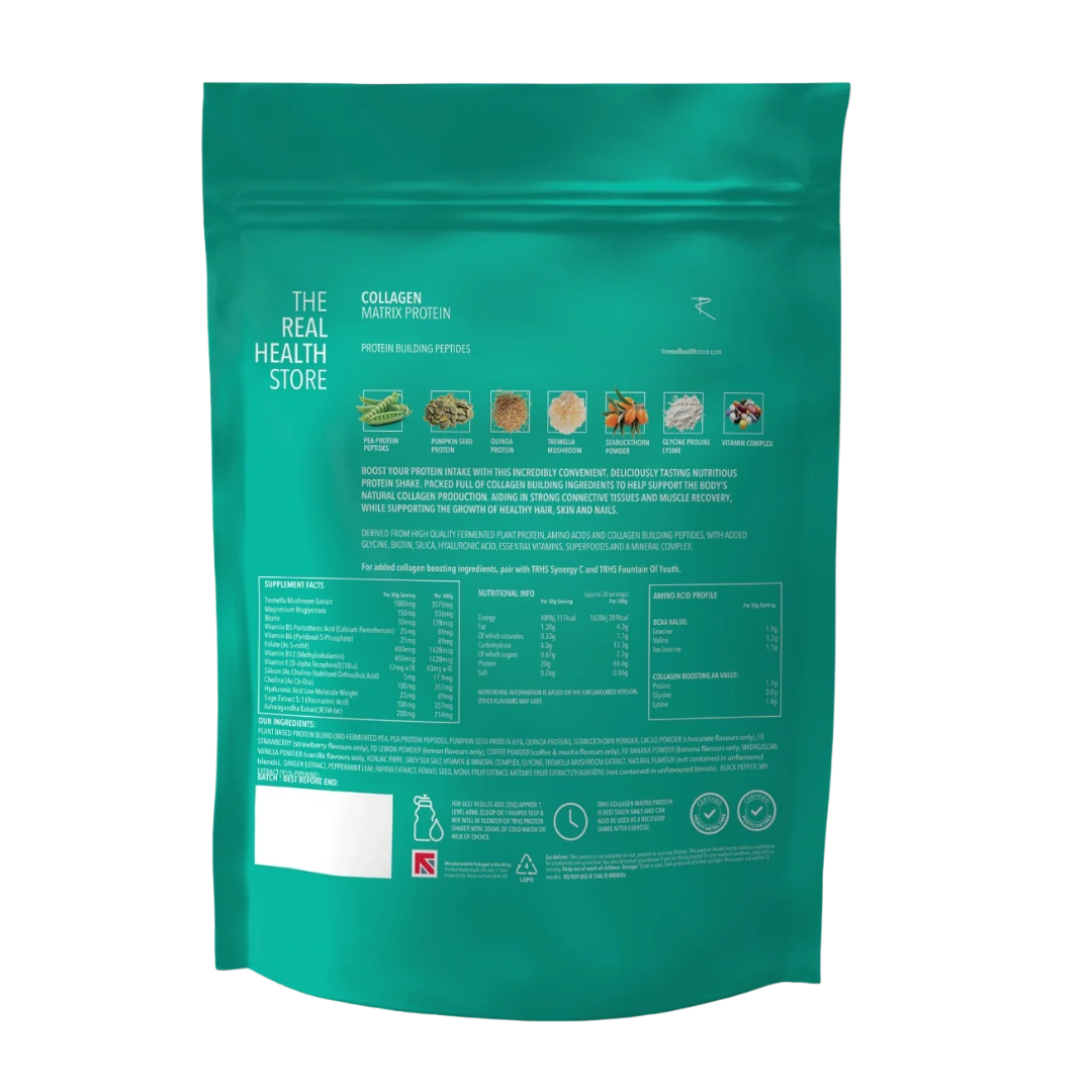 TRHS Collagen Matrix Protein liefert dir 19 g hochwertiges, fermentiertes Pflanzenprotein mit allen essenziellen Aminosäuren – perfekt abgestimmt auf deinen natürlichen Collagenaufbau. Statt tierischer Quellen bekommst du bioverfügbare Bausteine, die dein Körper sofort nutzen kann.